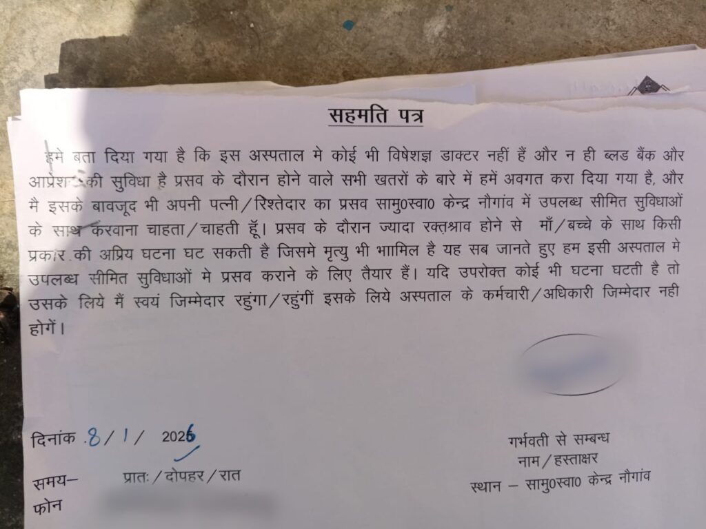 इस पत्र में साफ लिखा गया कि अस्पताल में कोई विशेषज्ञ डॉक्टर नहीं है, न ब्लड बैंक की सुविधा है और न ही ऑपरेशन की व्यवस्था। गर्भवती महिला के प्रसव के दौरान होने वाले तमाम खतरों, यहां तक कि मां और बच्चे की मौत की संभावना से परिजन को अवगत कराया गया और इसके बावजूद सीमित संसाधनों में प्रसव कराने की सहमति लिखवाई गई।