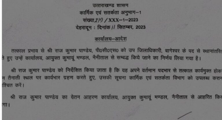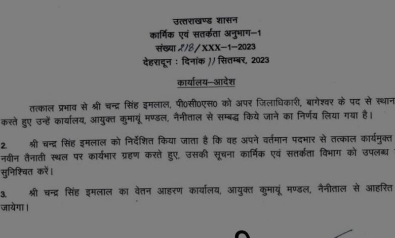 बागेश्वर उपचुनाव के बाद जिला प्रशासन में बड़ा फेरबदल